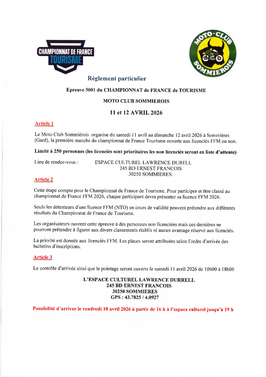 CFT1 - Sommières - Règlement Particulier