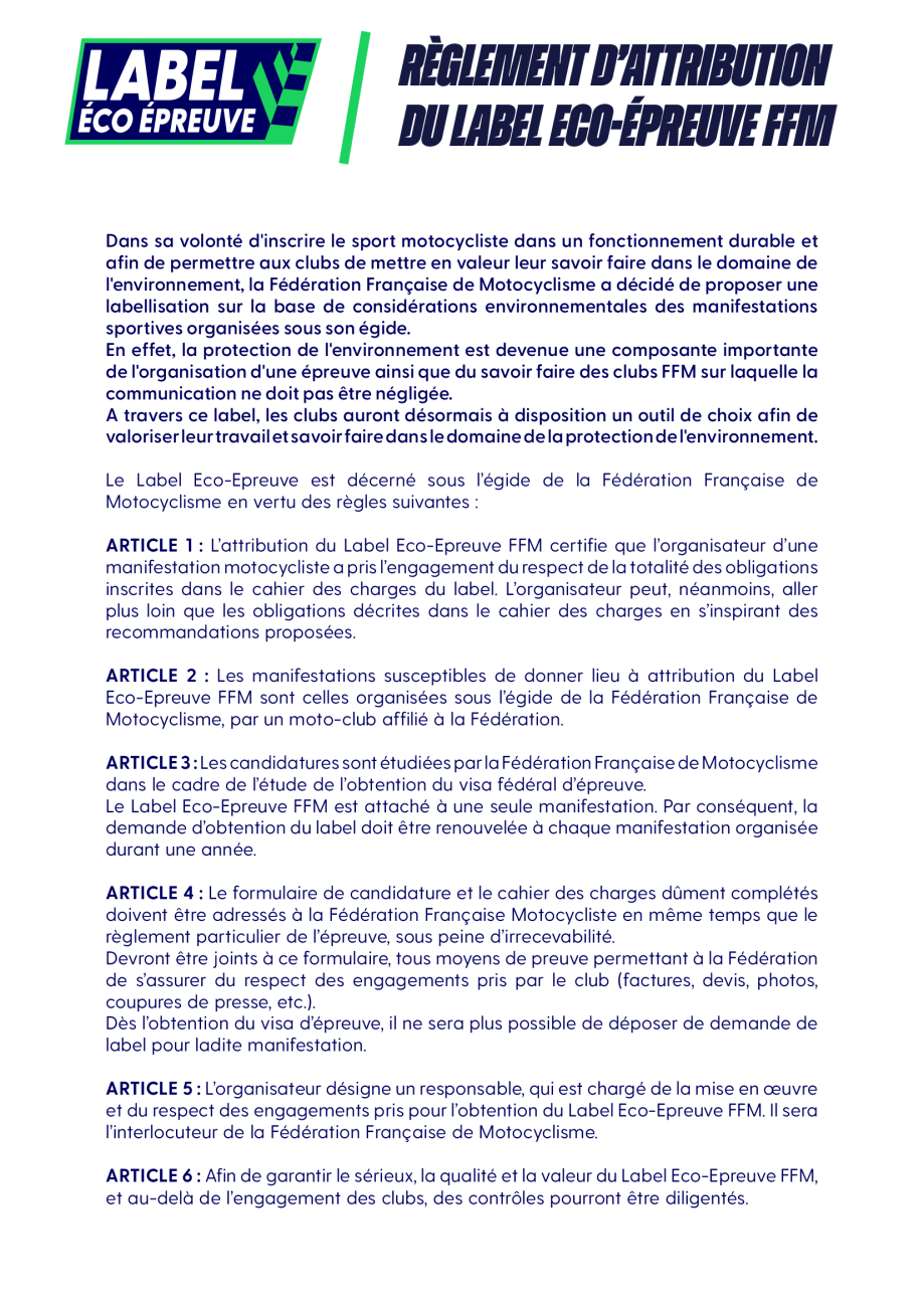 Label Eco Epreuve FFM