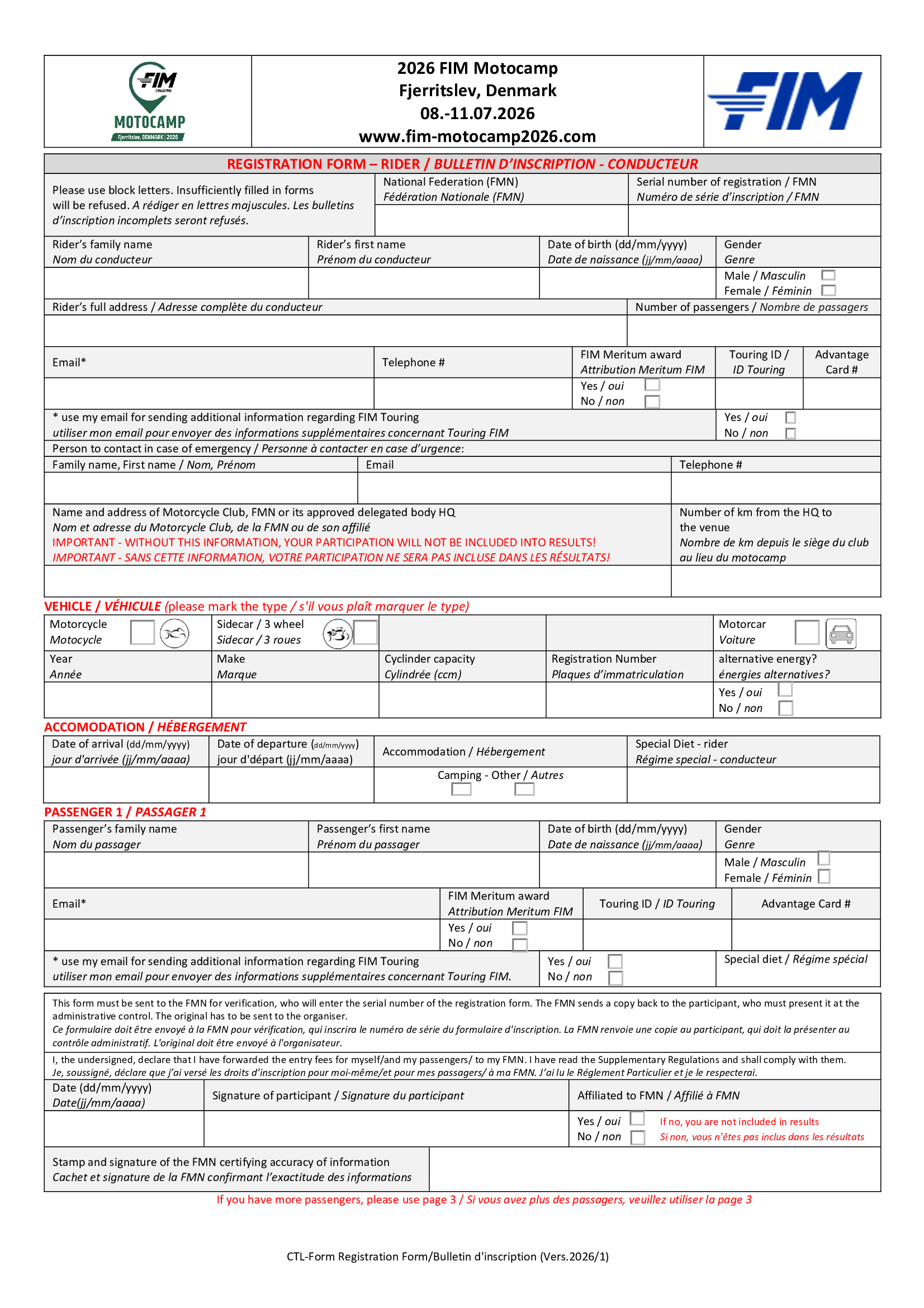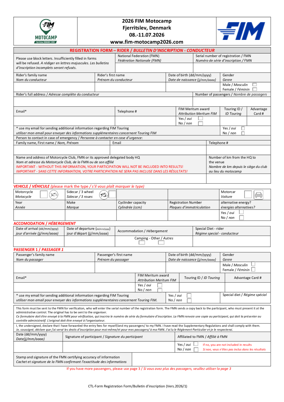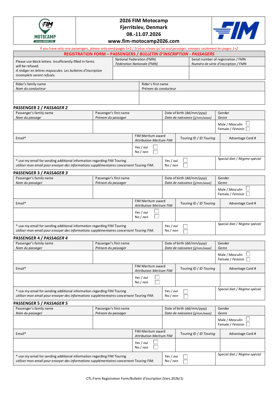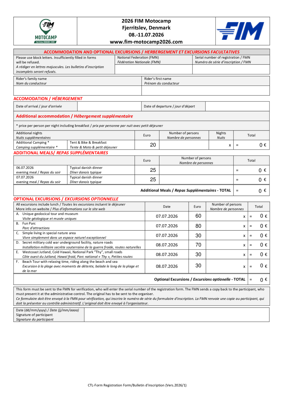 Motocamp 2026 - Bulletin d'inscription