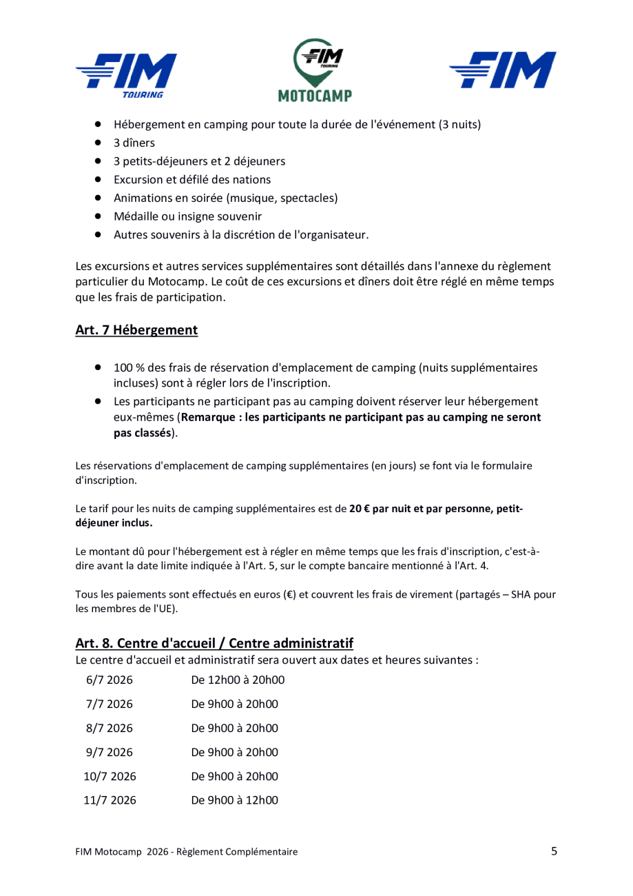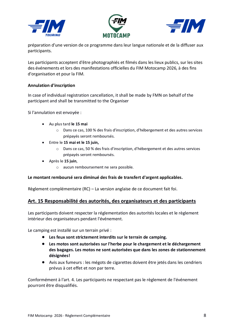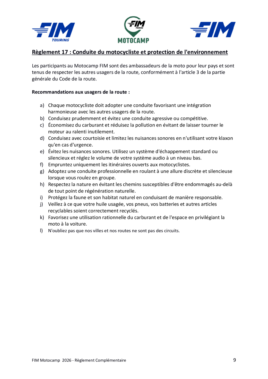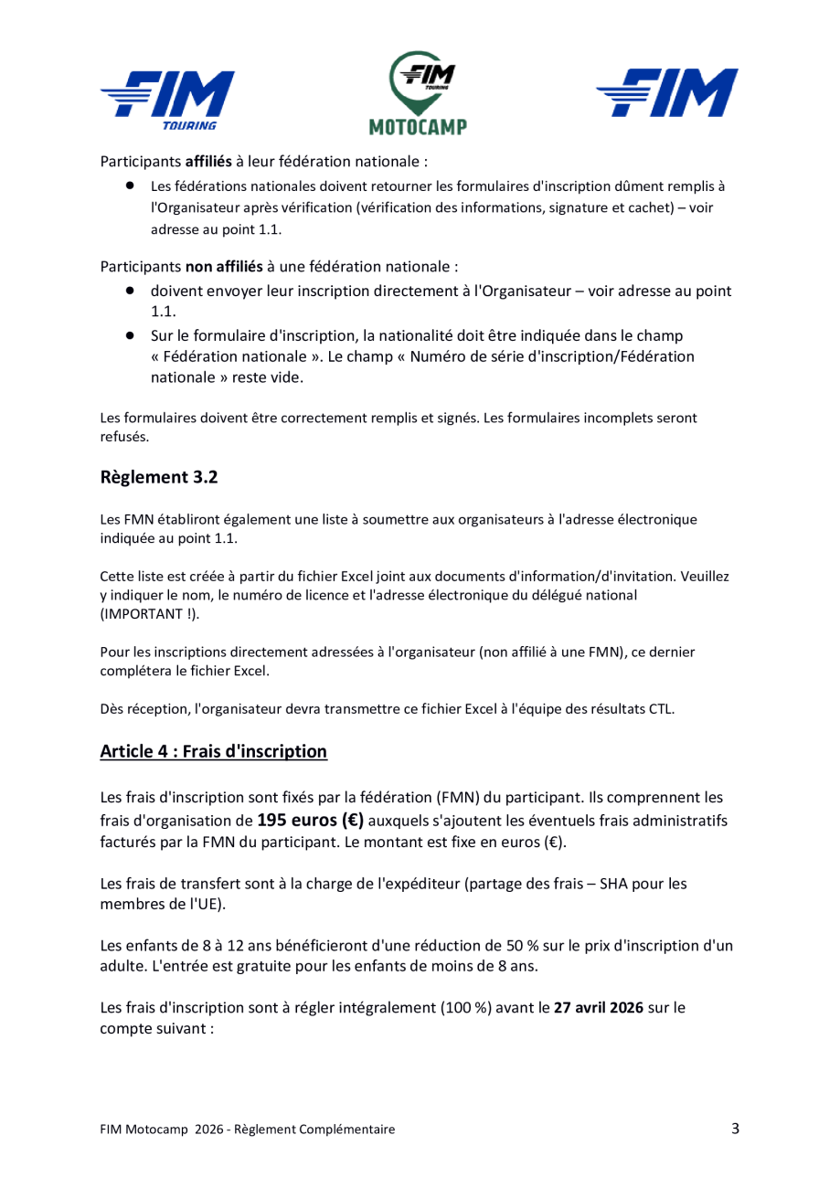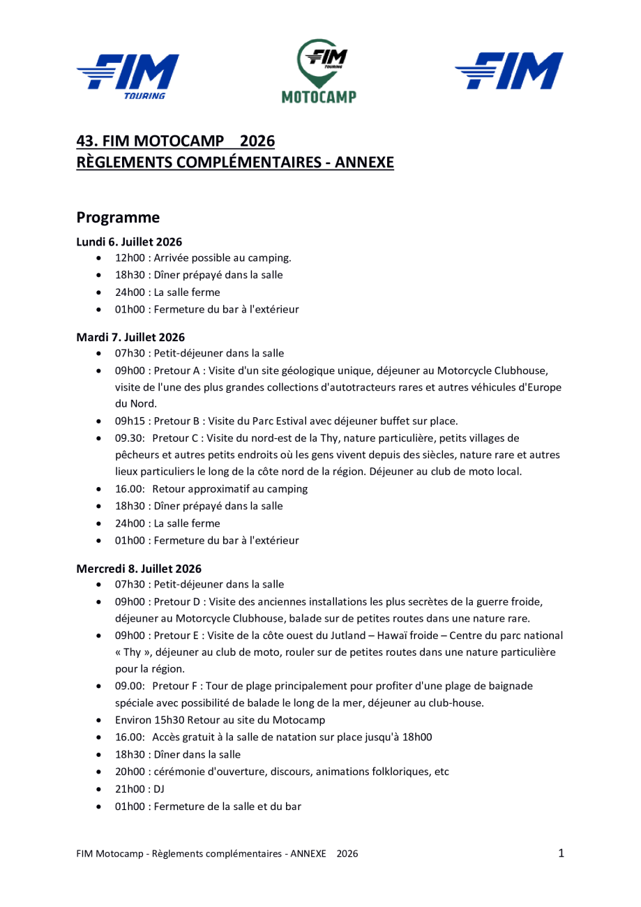 Motocamp 2026 - Règlement Particulier